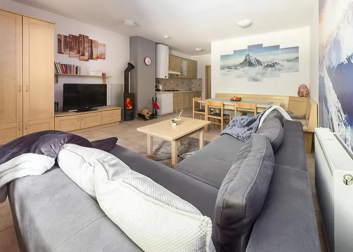 Apartmán Peaceful Rogla nabízí kuchyni i pokoje s TV se satelitními kanály, místností na posezení a kamenným krbem. Je situován 4,2 km od Jurgovo II a 10 minut jízdy od Masin zaga 1.